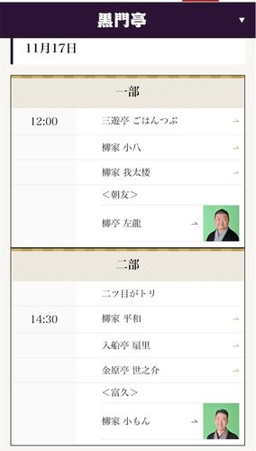 ※空欄は決定し次第徐々に埋めていきます。お願い致します! 【10/11追記】11/7小もん百話会は会場がひらい圓蔵亭に変更になりました。ゲストに小ふねさんをお呼びします。 寄席 黒門亭 11/17(日)二部14:30開演各回1,000円 出番:主任『富久』 [連雀亭]○11/7…